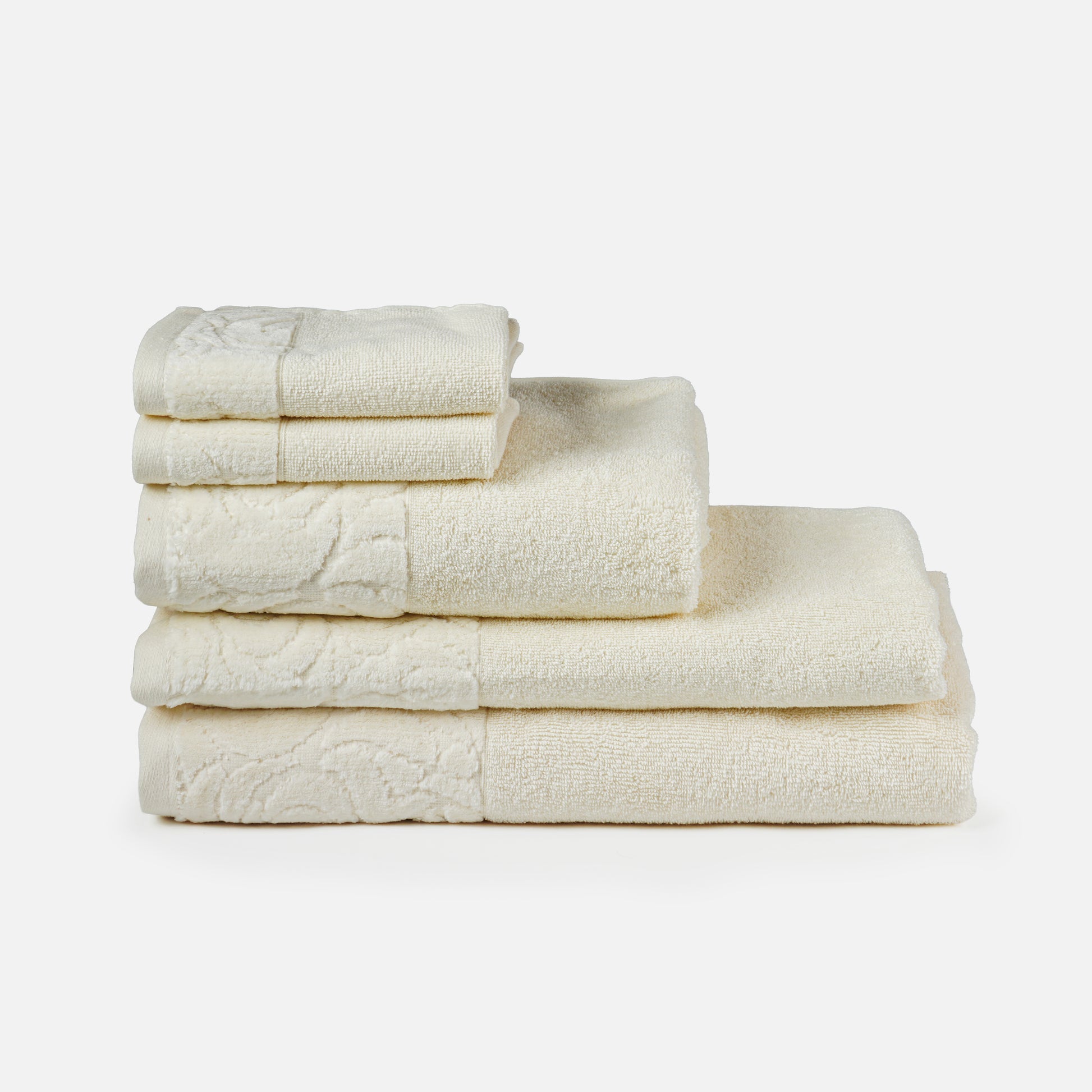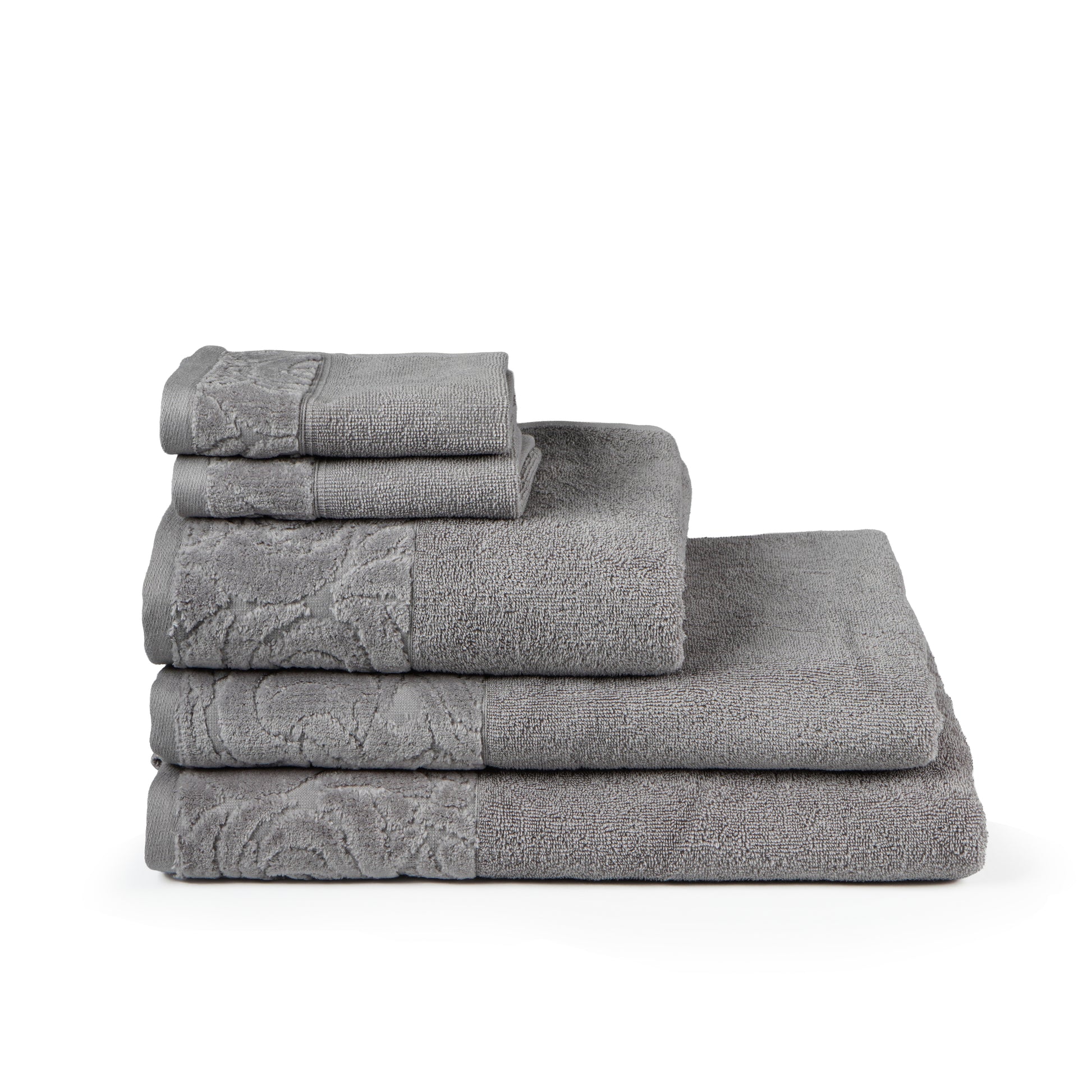 Experience the complete versatility of the Juliet Collection with our Signature 5-Piece Set. This bundle is perfectly curated for the individual who wants a dedicated, matching towel for every stage of their routine—from a morning facial refresh to a deep, relaxing soak in our oversized bath sheet. Featuring the unique velvet-cut border, this set brings a touch of boutique elegance to your personal space.